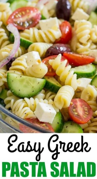 In a large bowl, combine cooked pasta, cucumbers, onion, tomatoes, feta, and olives. Drizzle with dressing. Toss gently until uniformly combined and serve.